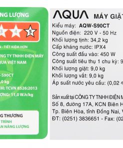 Máy giặt Aqua 9 Kg AQW-S90CT được đánh giá là thân thiện với người tiêu dùng Việt Nam khi thiết kế bảng điều khiển nút nhấn nằm bên phải (chiều thuận của phần lớn người sử dụng) và hỗ trợ tiếng Việt. Không chỉ vậy, máy còn được trang bị nắp kính trợ lực, ngăn chặn nguy cơ gây kẹt tay, an toàn cho bạn và người thân.